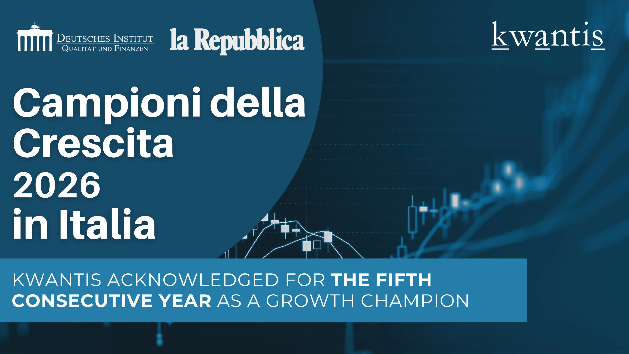 Kwantis is proud to announce its fifth consecutive inclusion in the prestigious Campioni della Crescita ranking, the annual study conducted by the German Institute for Quality and Finance (ITQF) in collaboration with La Repubblica – Affari & Finanza. In this year’s edition, Kwantis has been recognized with 21.36% average annual growth rate, achieving a higher ranking than in previous years and further solidifying its position among Italy’s most dynamic and resilient companies.